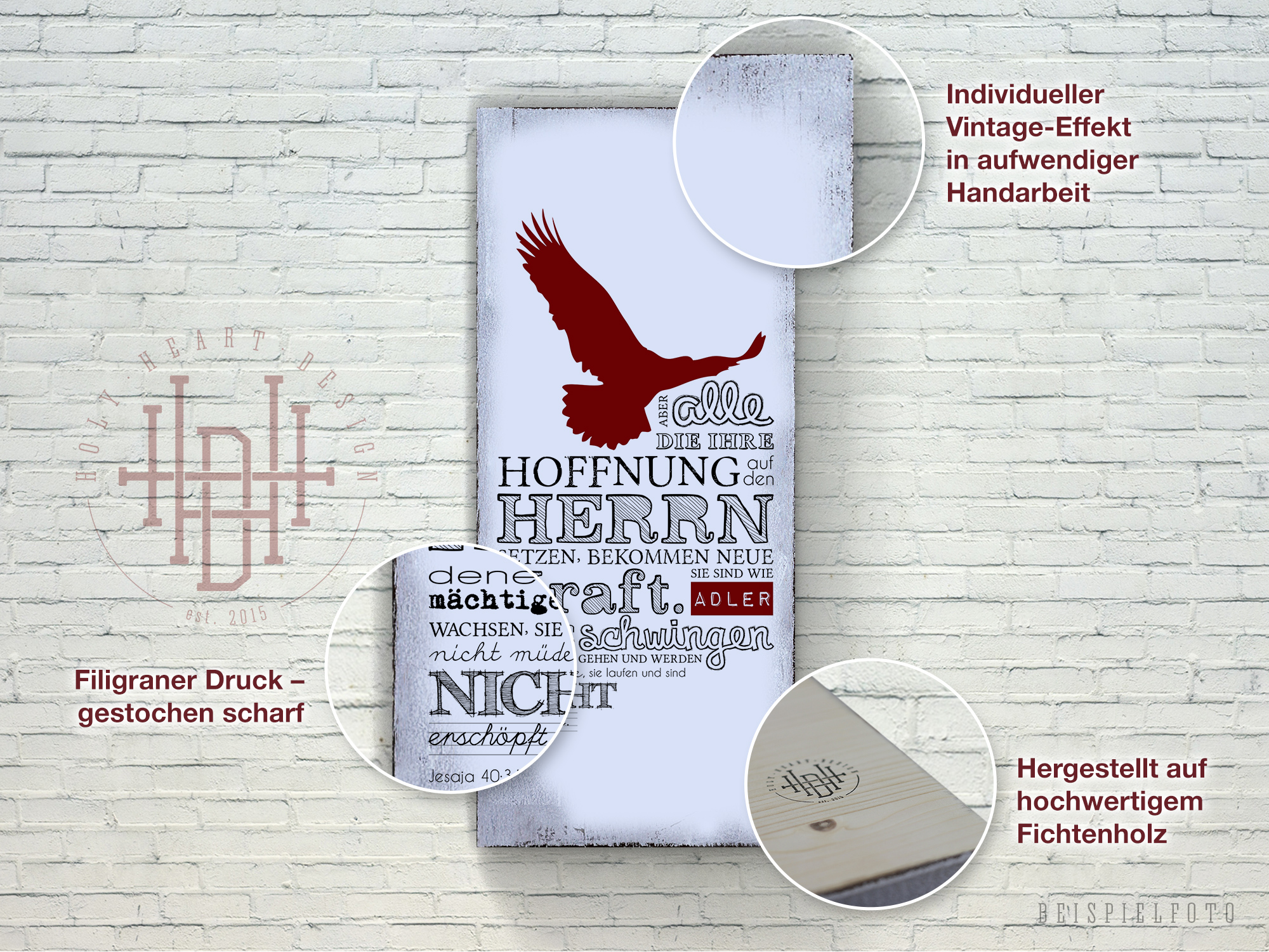 Adler – Vintage Wandbild (Holz) mit Bibelvers