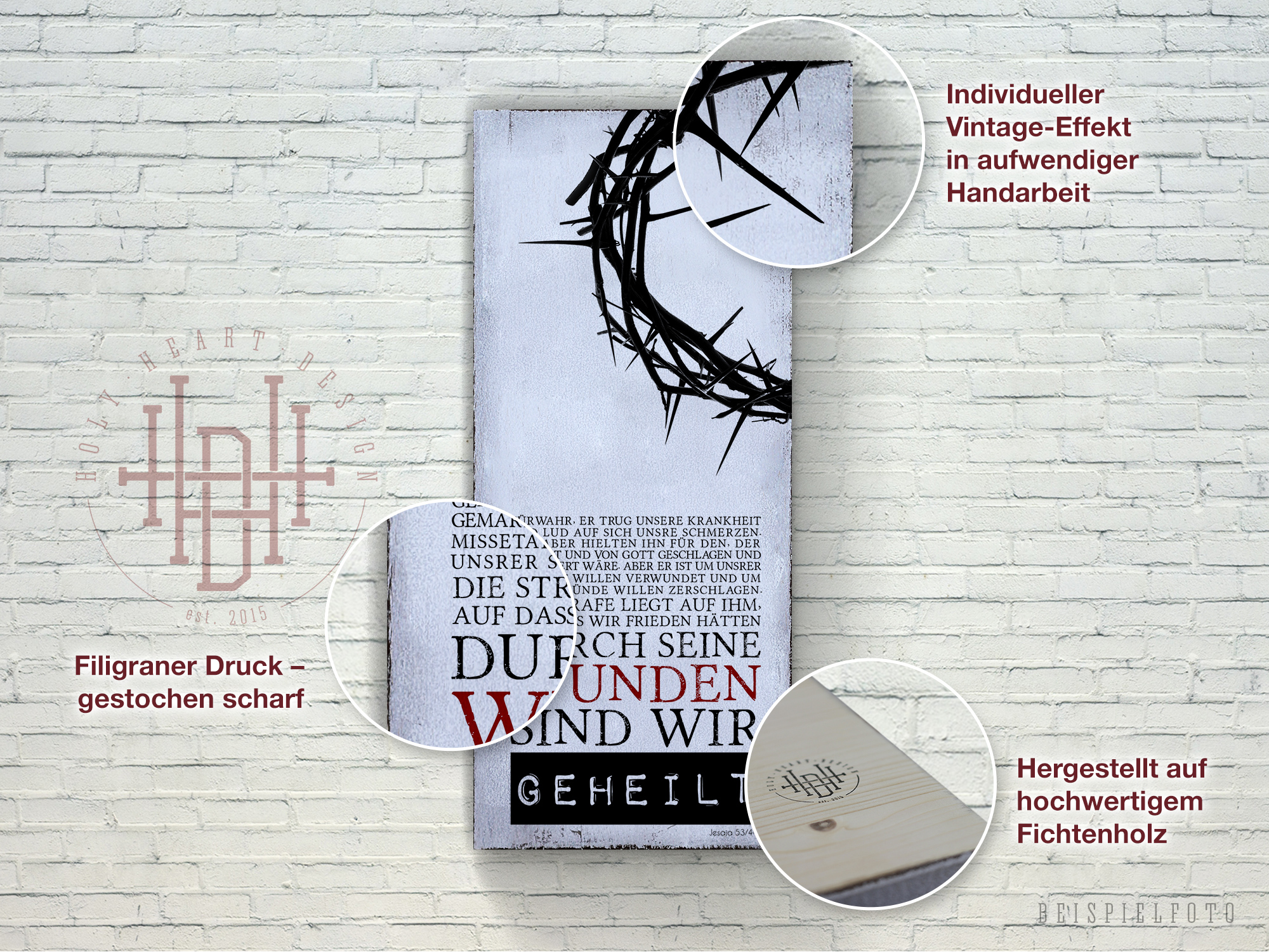 Geheilt – Vintage Wandbild (Holz) mit Bibelvers