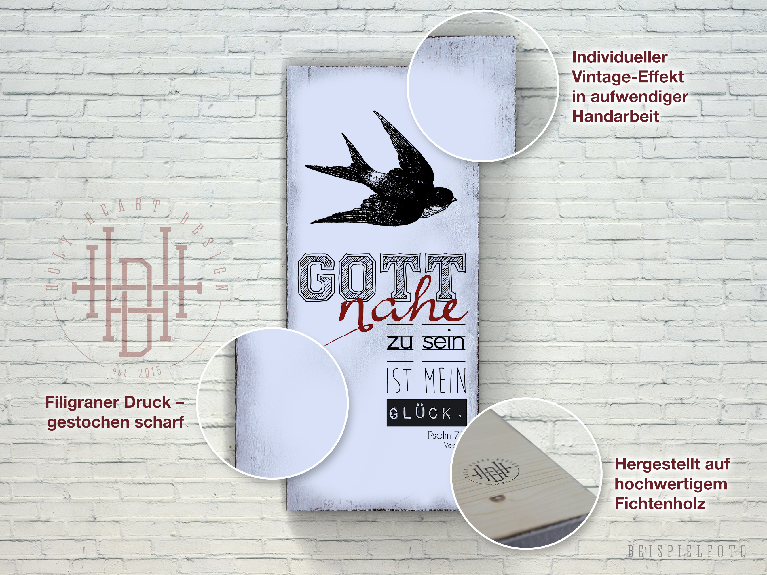 Gott nahe zu sein, ist mein Glück – Vintage Wandbild (Holz)